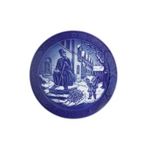 The 2014 Christmas plate shows two children, Matilde and Alfred, who stop to admire the statue of the famous Danish author H.C. Andersen. The large building in the background is the Copenhagen city hall, erected in 1905. The children are on their way home with a delightful little Christmas tree that Alfred wants to decorate for Christmas, while Matilde reads the wonderful Christmas fairy-tale “The Fir Tree” aloud. This year, the Christmas Plate has again been designed by Sven Vestergaard