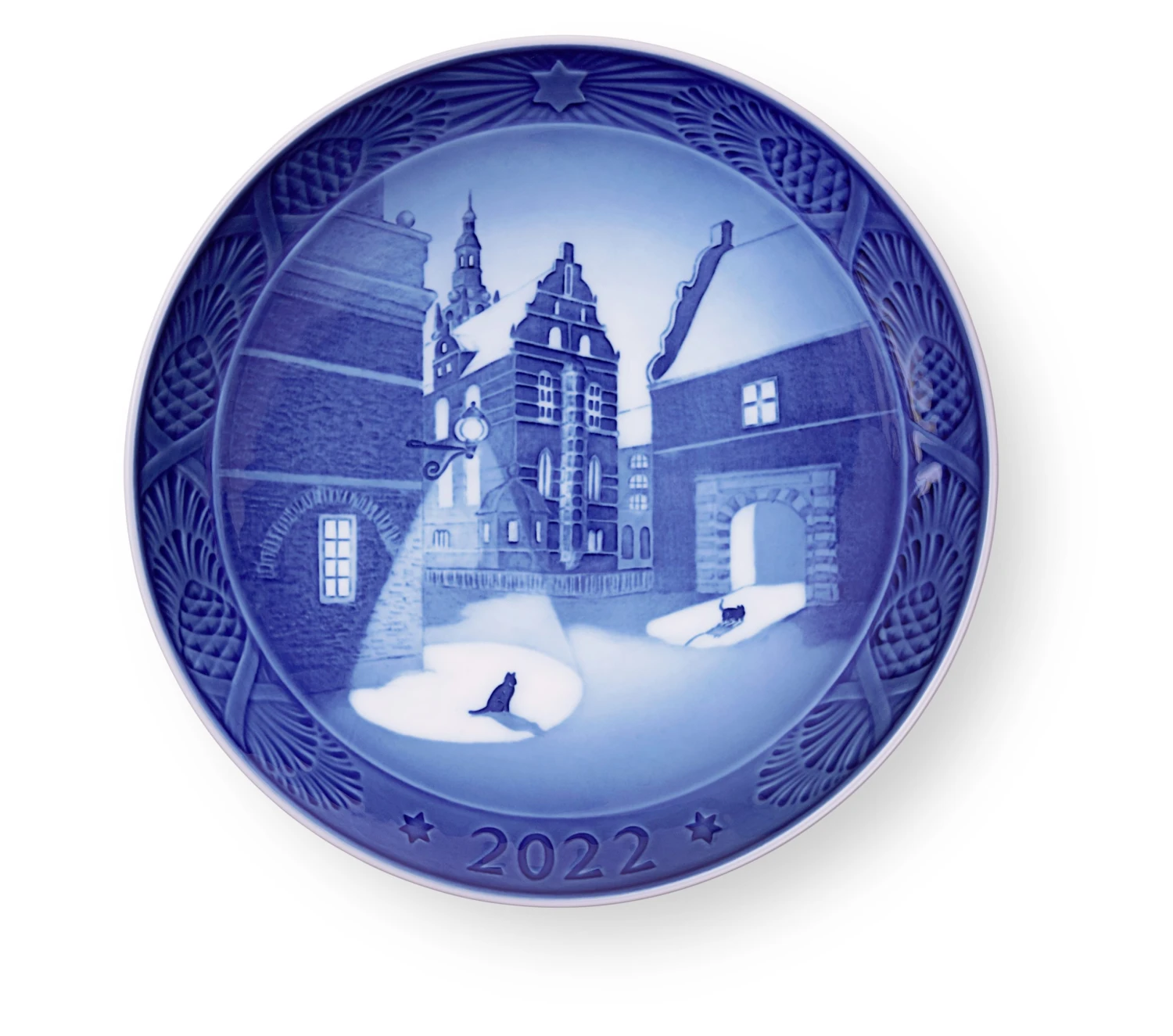 It’s Christmas Eve at Frederiksborg Castle, and on the snow-covered cobblestones, the glow of the streetlamps captures the twinkling eyes of the two castle cats. The Royal Copenhagen Annual Christmas Plate has been made by hand and issued annually since 1908. Once again, this year, the annual Christmas plate is accompanied by a figurine.