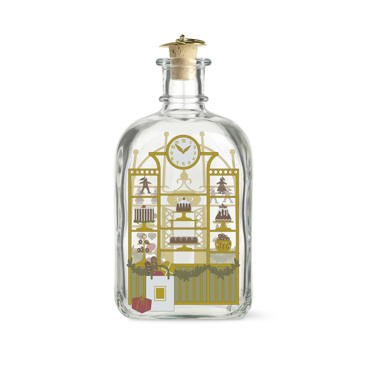 With artist Jette Frölich’s nostalgic and masterful paper cuttings, Holmegaard Christmas invites you to take a look through the windows of a traditional old bakery. With the 2023 Holmegaard Christmas Bottle, Jette Frölich takes us to a traditional old bakery that sells Danish Christmas bakes and sumptuous Christmas cakes with sugar, raisins and frosting. Gingerbread men and women hang side by side from the curved windows. Christmas spirit flows from the bakery, drawing you into a world of dreams and nostalgia. Who hasn’t stood outside a shop window at Christmas time with their nose pressed against the glass and dreamt of fragrant Christmas baking and Christmas gifts? The Christmas bottle is 8.3″ tall and holds 24.7 oz. The motif on the Christmas bottle is a variation of the motifs that adorn the entire Holmegaard Christmas 2023 series. The motifs are based on reflections on the magic of Christmas, and beautifully convey children’s love of Christmas and the sense of anticipation for the big day. Not dishwasher safe.