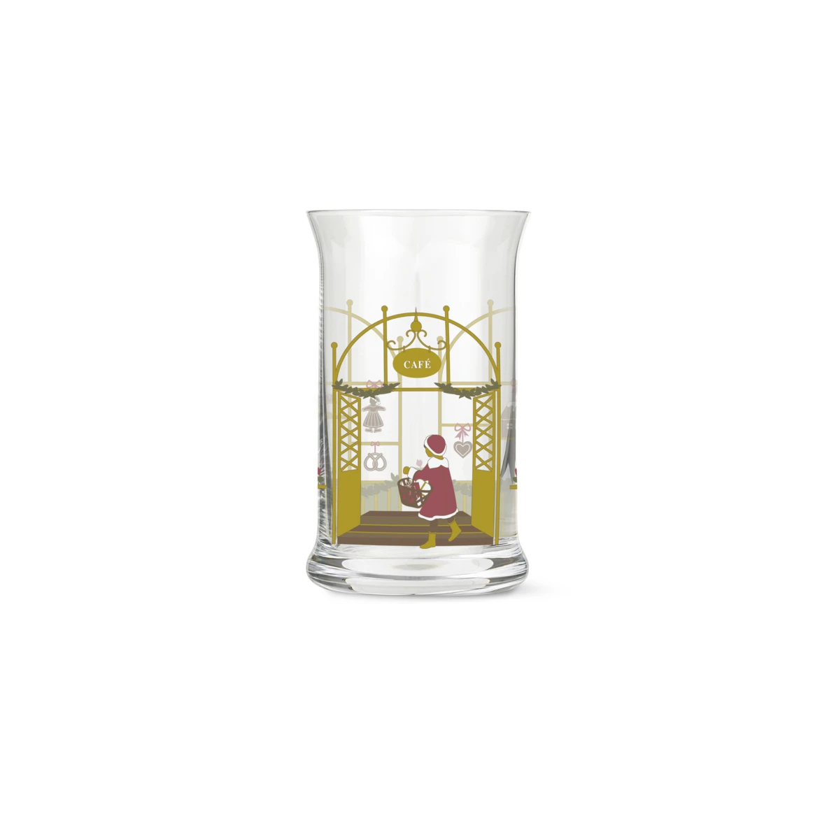 With artist Jette Frölich’s nostalgic and masterful paper cuttings, Holmegaard Christmas invites you to take a look through the windows of a traditional old bakery. Admire Jette Frölich’s original and artistic universe up close on the iconic Christmas water glasses, sold in packs of two, and toast the Christmas season with family and friends. The 4.7″ tall Christmas water glasses can hold 9.5 oz and fit well in your hand. The evocative water glass is perfect for Christmas table settings and is both aesthetically and functionally pleasing. The Christmas motif is a variation of Jette Frölich’s classic bakery window. The water glass features a girl in front of the bakery entrance and a wide range of cakes, including a gingerbread man, an English Christmas cake, a marzipan pig, a beautiful Christmas pretzel and a gingerbread house. The motif on the beautiful Christmas water glass is a variation of the motifs that adorn the entire Holmegaard Christmas 2023. The motifs are based on reflections on the magic of Christmas, and beautifully convey children’s love of Christmas and the sense of anticipation for the big day.