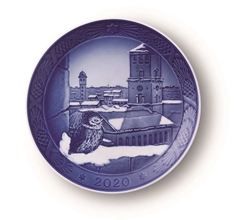 The little Church Owl keeps warm in his feathered suit as he watches over the skyline of the Copenhagen and listens to the bells of the Church of Our Lady from his nook at the old Copenhagen University. He pays close attention as Copenhageners flock from the busy streets of the city centre to enter the quietness of the grand church to enjoy the silence and revel in the beauty of the lavish sculptures by Bertel Thorvaldsen. The Annual Plates have been issued every year since 1908. The relief for the motif has been hand-cut by Royal Copenhagen’s talented modeling artists based on a drawing of the motif by artist, Allan Therkelsen, and the plate has been cut according to the proud craftsmanship traditions. Allan Therkelsen has also created this year’s Bell, Drop and Figurine.